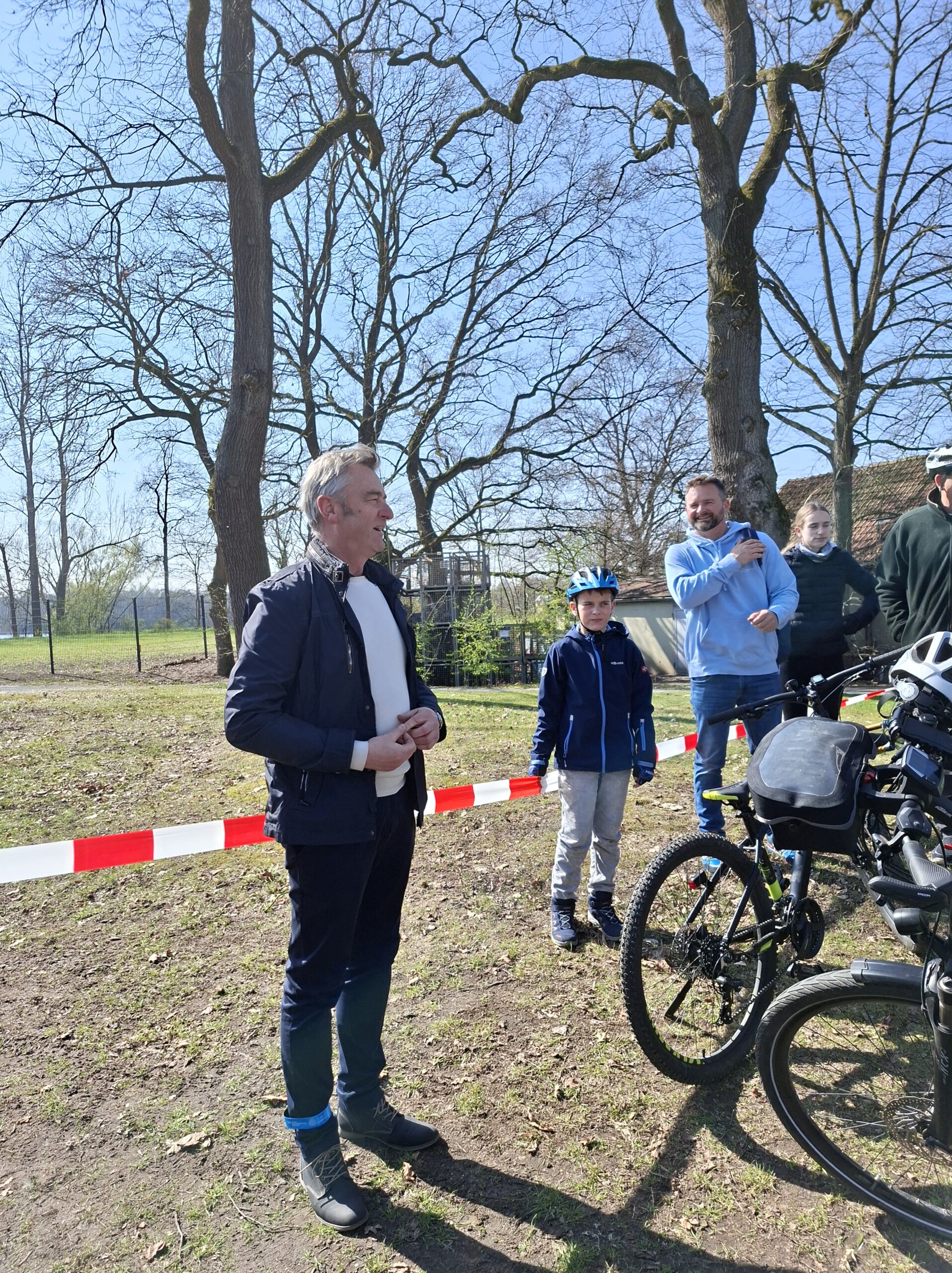 Nach dem Start am Dorfplatz in Sande begrüßte der stellvertretende Bürgermeister Robert Siemensmeyer die Teilnehmenden und schickte sie in Richtung des Gruppenklärwerks in Sande. Insgesamt waren vier Stationen thematisch zum Weltwassertag vorbereitet.