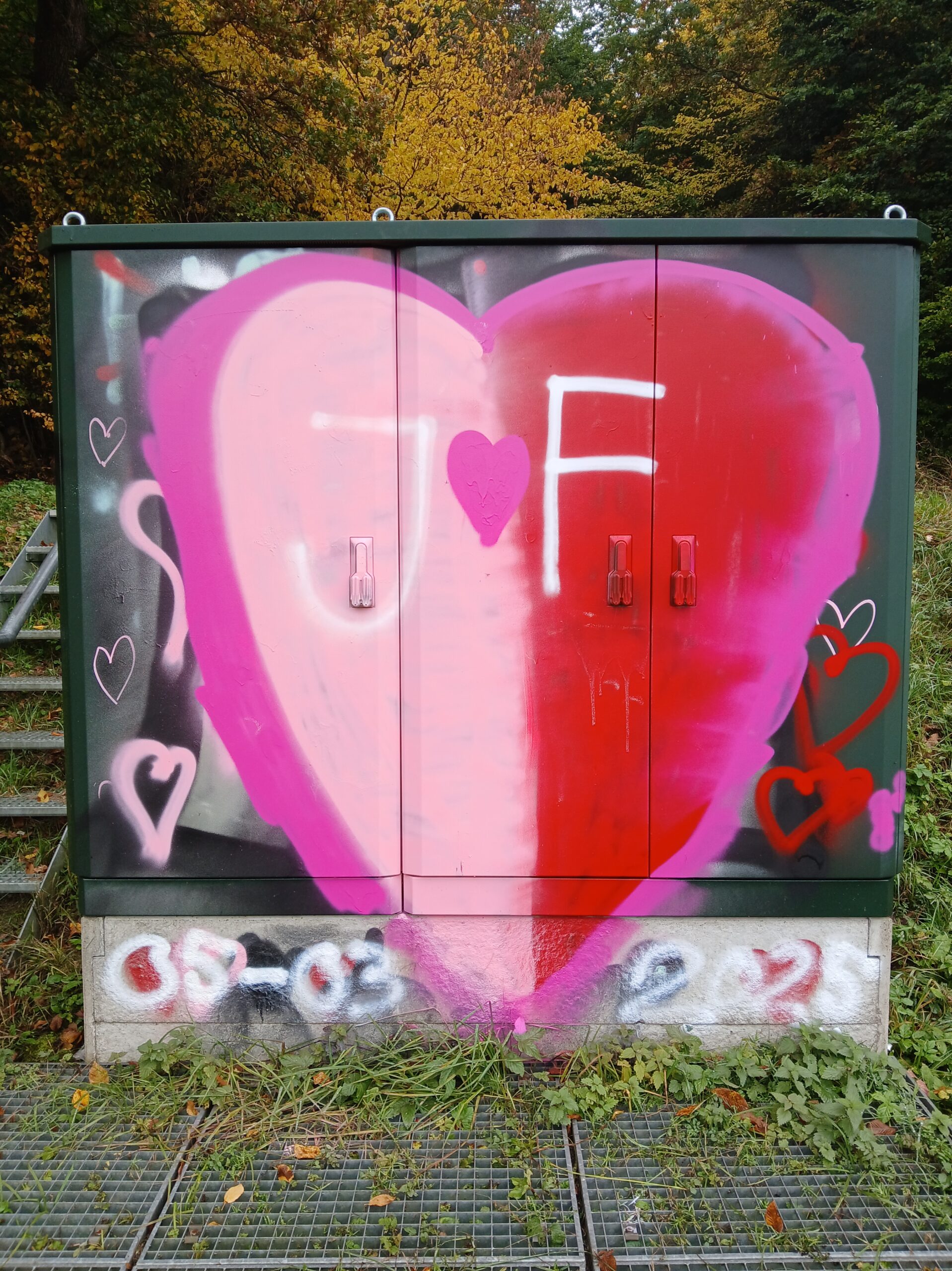 Ein Schaltschrank im Ortsteil Herbram wurde in den vergangenen Monaten wiederholt mit Graffiti besprüht. Zuletzt mit einem riesigen Herz und den Initialen „J“ und „F“. So romantisch der Gedanke vielleicht gemeint war: Für die Stadtwerke Lichtenau ist es als Eigentümer weniger ein Liebesbeweis als vielmehr ein Fall von Vandalismus.